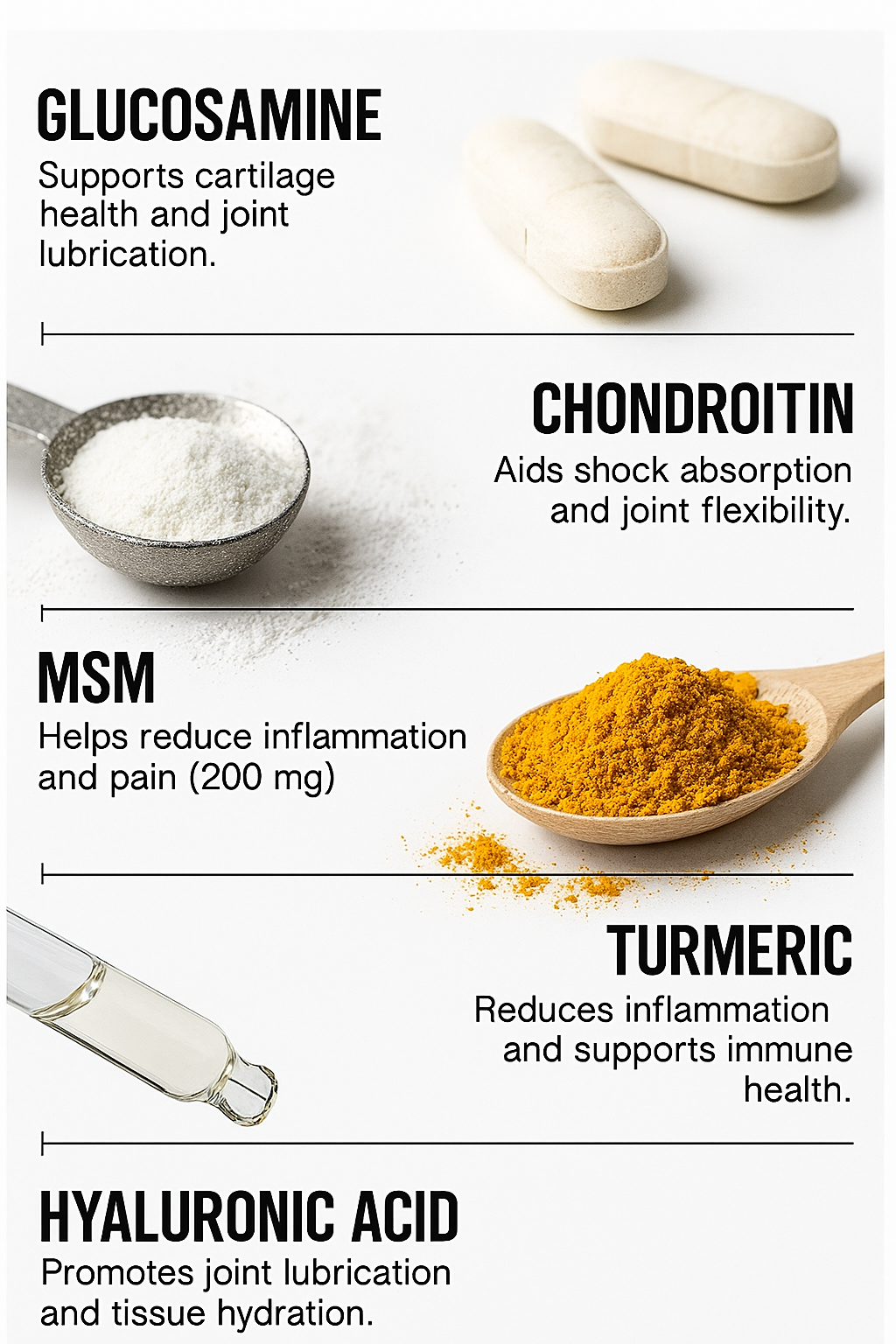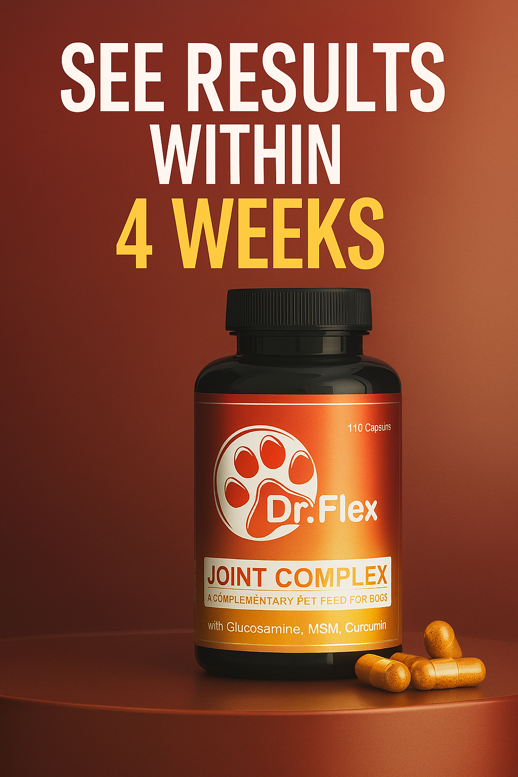Gelenk-Komplex für Hunde mit Glucosamin, Chondroitin, MSM, Kurkuma und Hyaluronsäure. Unterstützt Gelenke, Sehnen, Knochen und Beweglichkeit. Ideal bei Arthrose, Hüftproblemen oder zur täglichen Prävention. Natürliche Alternative zu Schmerzmitteln für Hunde aller Altersklassen.